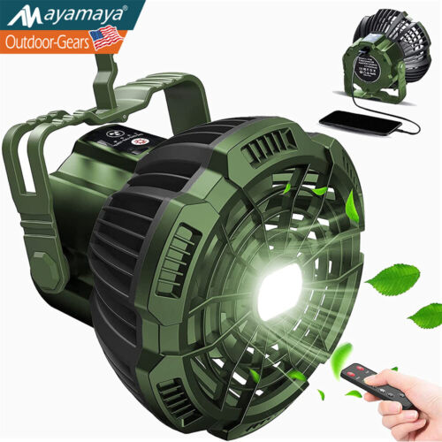 • 2 IN 1 DESGIN WITH REMOTE CONTROL - This camping fans for tents is combined with LED light, it can meet your needs for both cooling and lighting, reduce the weight/space of your backpack by saving from taking separated fan and light. Also comes with a remote control, which can remotely control the camping fan. It’s easy to operate for outdoor camping and hiking.